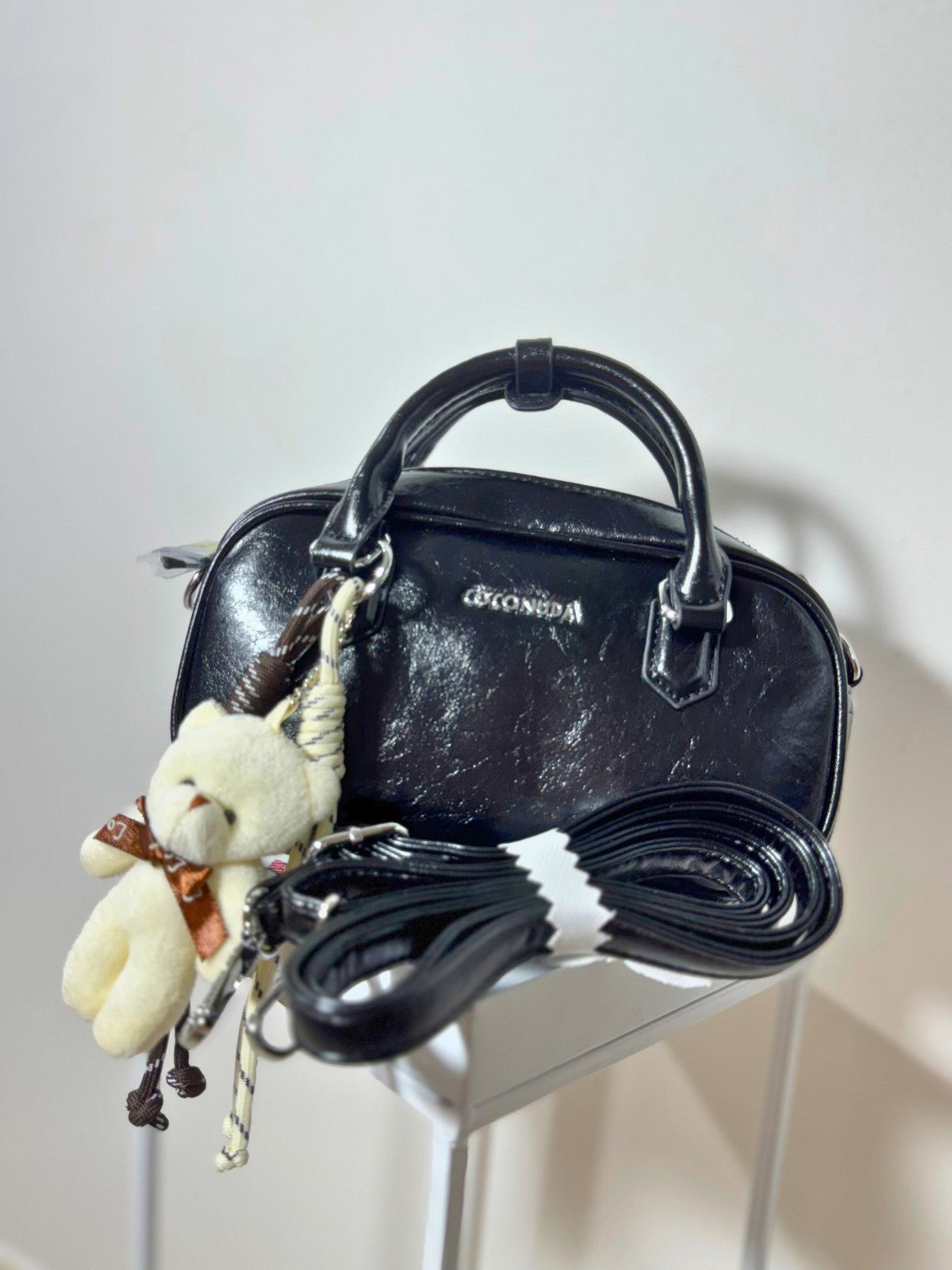 Borsa a Mano Coconuda – Nera con Portachiavi Orsetto