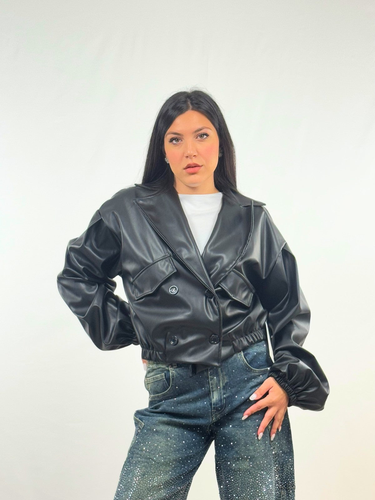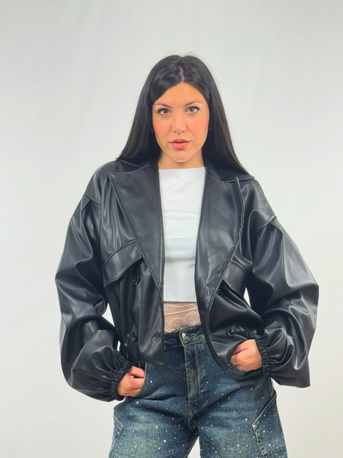 Giubbino Crop in Ecopelle